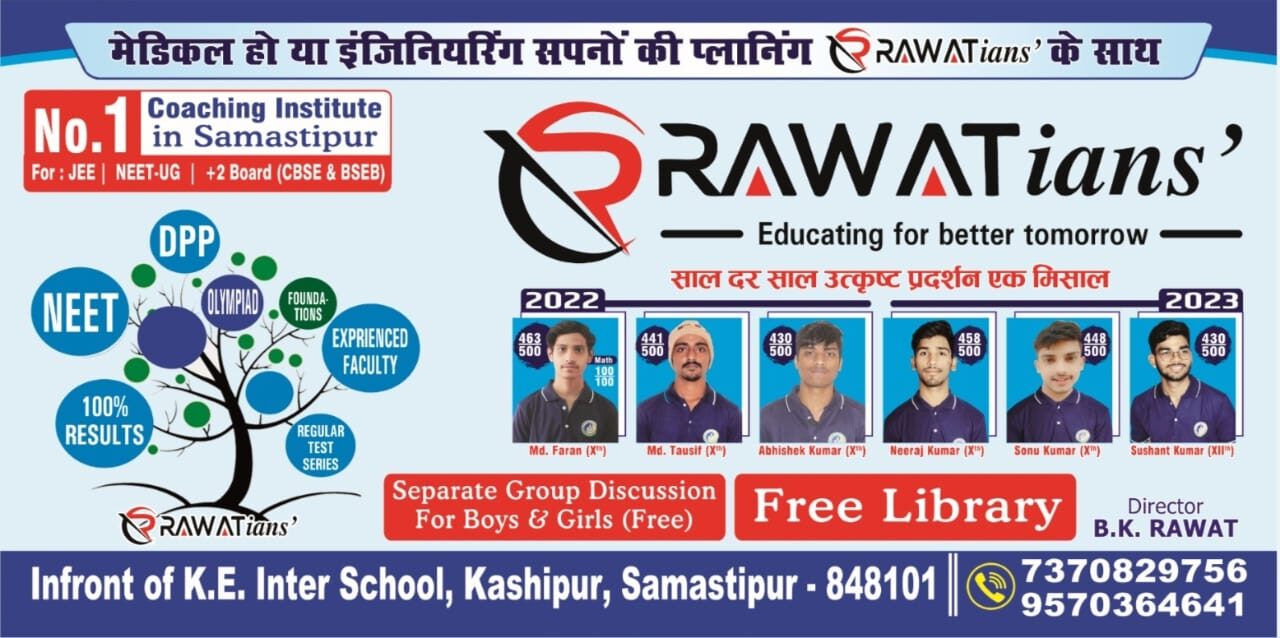 Samastipur की पावन धरती पर स्थापित RAWATians उन छात्रों के लिए समर्पित है जो कक्षा 6वीं से 12वीं तक